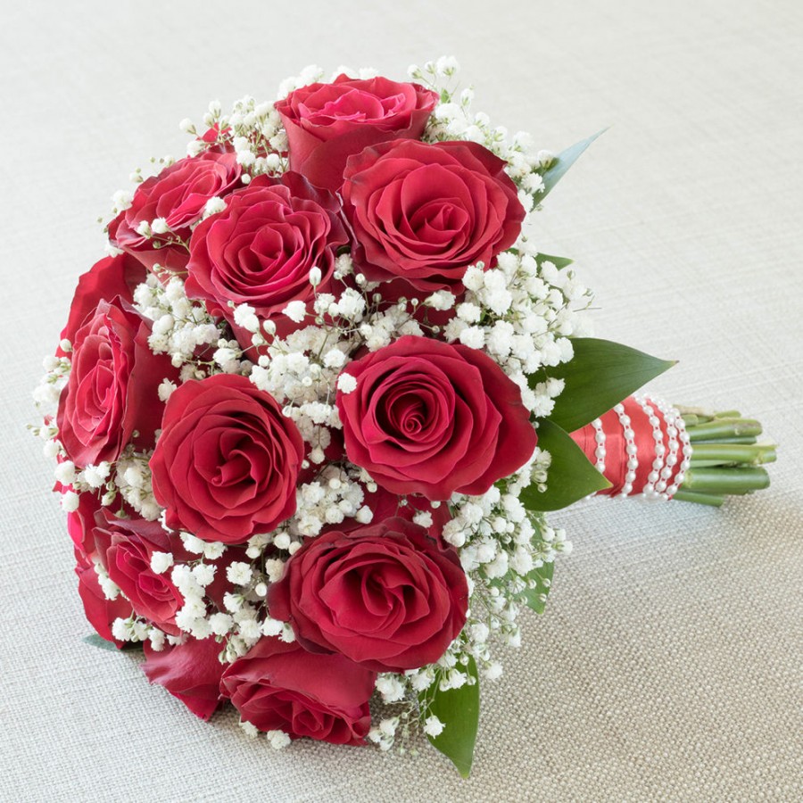 The Forever Yours Bouquet is an expression of true love presented by the most passionate flower - the red rose. It is mixed with gypsophila and aralia leaves to form a classic romantic bouquet!